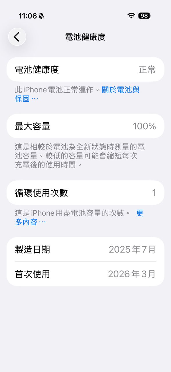 [型號] Apple iPhone Air(電池循環次數1)