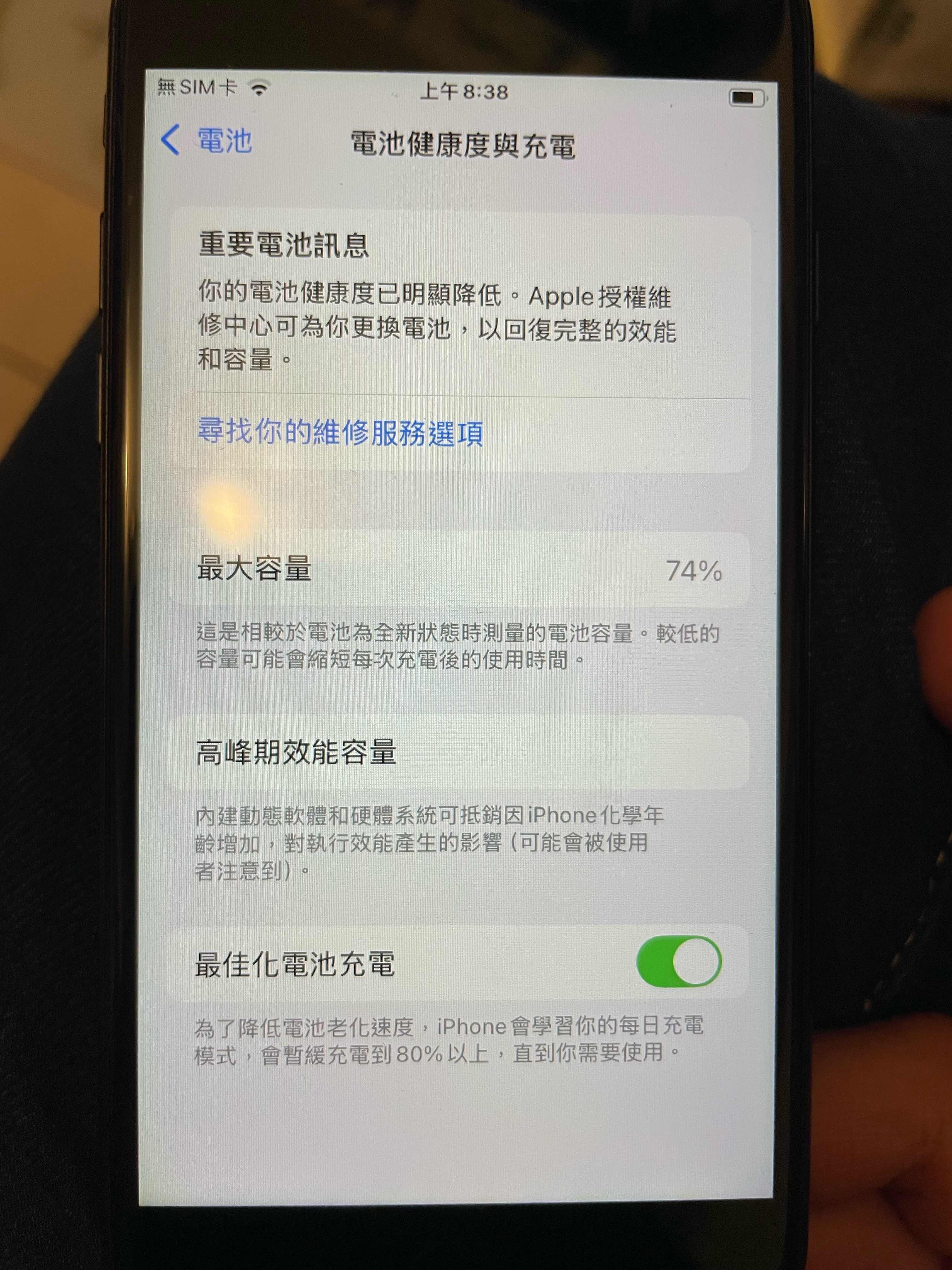 SE2,電池健康度74%