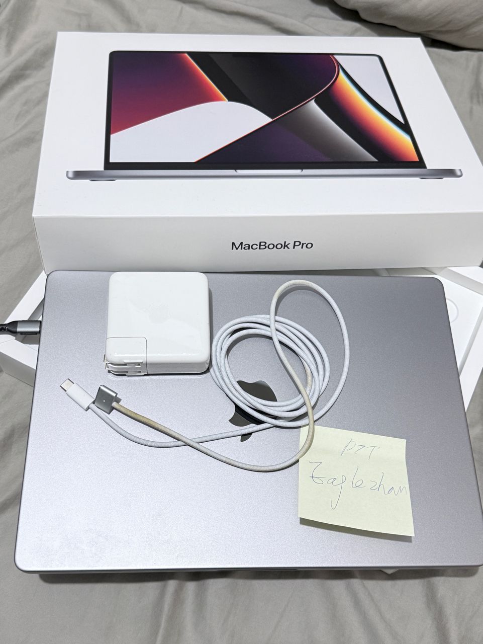 原廠盒裝還在,原廠充電頭跟MagSafe 磁吸線也都在。