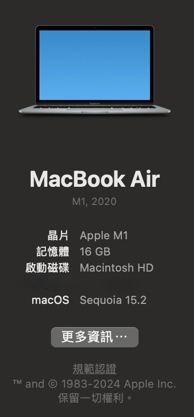 [型號] MacBook Air M1 2020