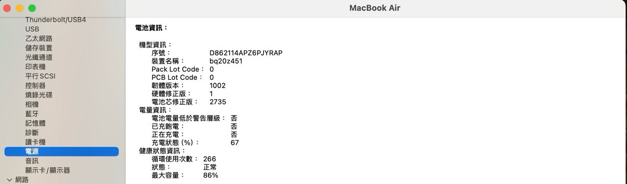 電池循環 266 無明顯外傷 僅正常使用痕跡