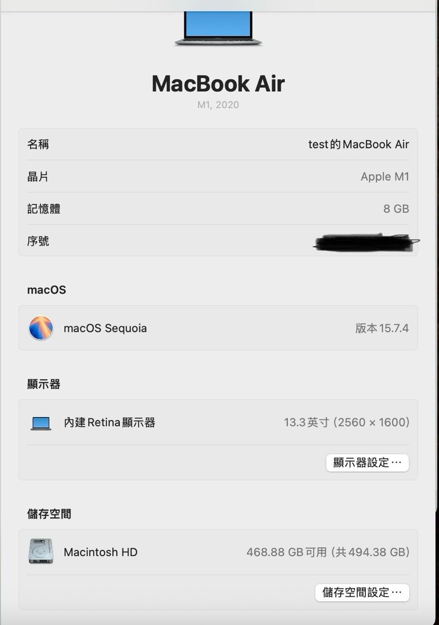 [型號] Apple MacBook Air m1 2020