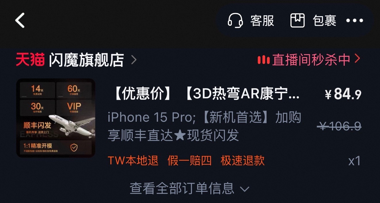 這支 15 Pro 換下來當工作備機,就順便試一下閃魔中高價款的效果,以這個價位來說這張膜算是毫無過錯,R 角也比前一張 hoda 漂亮,但 AR 效果不如 hoda,3D 收邊品質和最下面的 Torras 高價款有得比。此外,閃魔還有更頂級款式(148RMB 氮晶膜、122RMB 3D熱彎肖特),但這兩者都沒提到 AR,這是我看重的,所以我不想買。