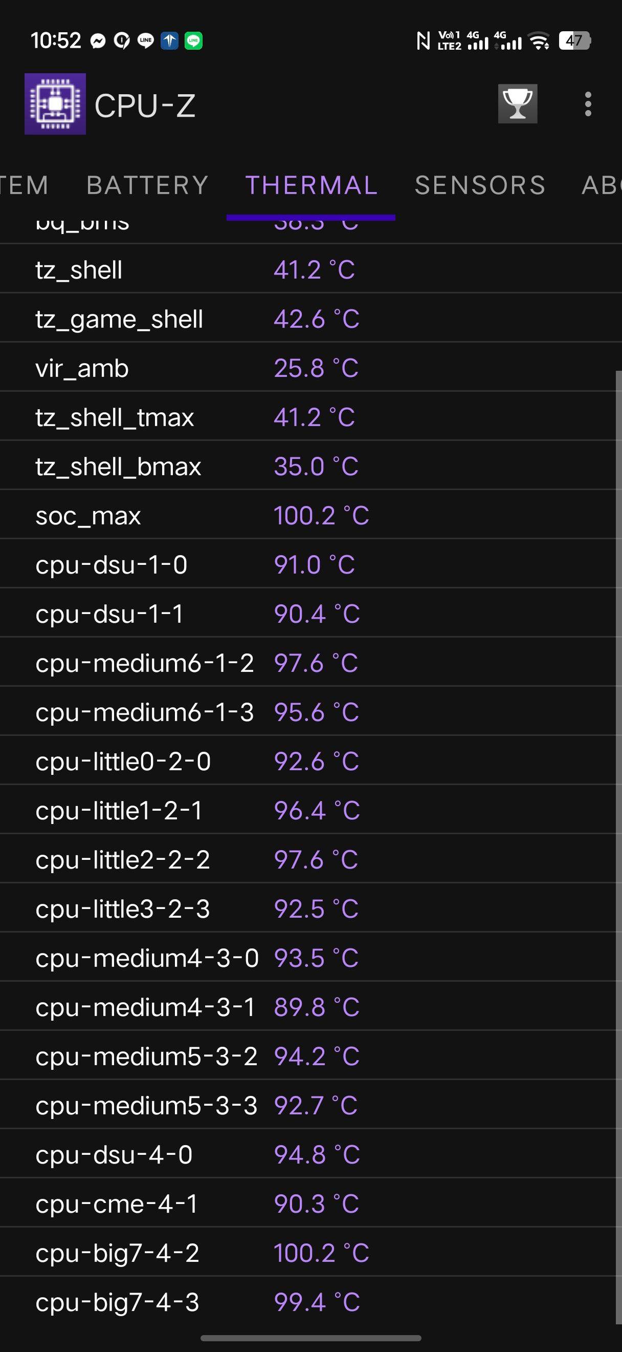 玩傳說對決 我只玩一場 特效全開 平均大概都在48度左右 也不太會上到50
