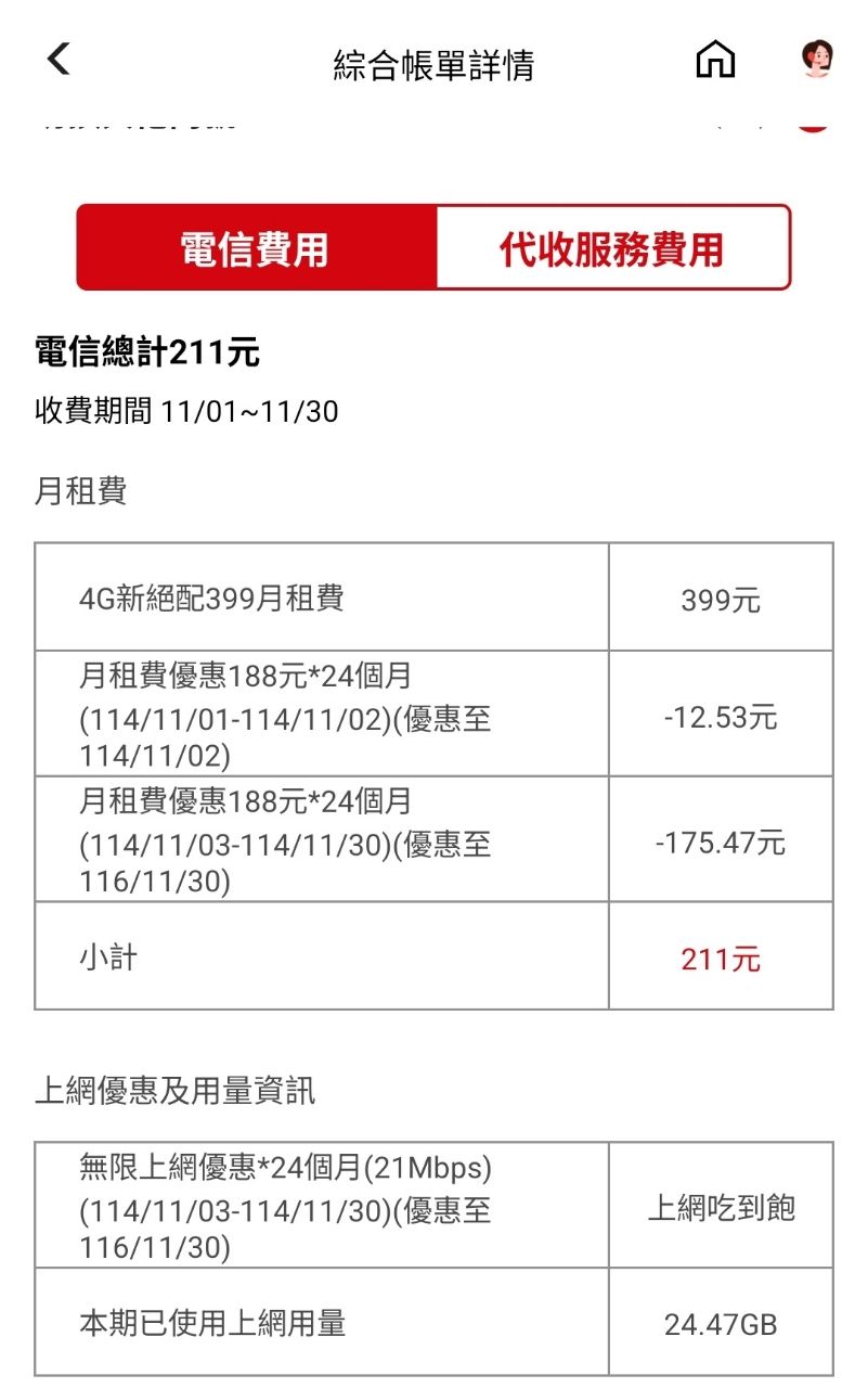 剛剛看到新一期帳單資訊