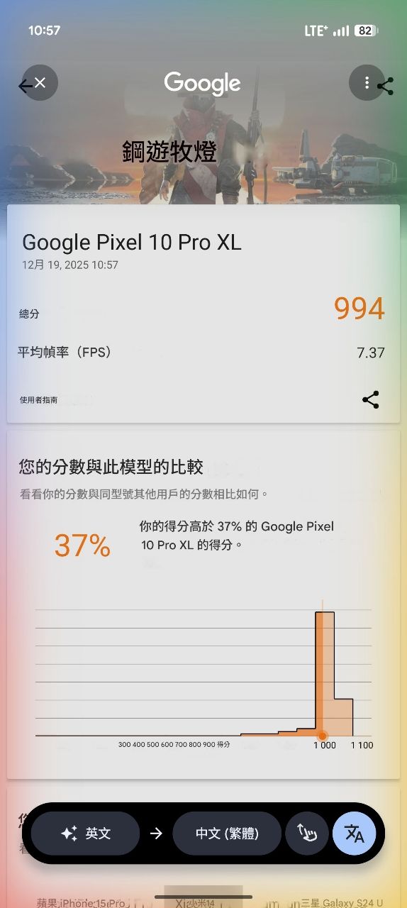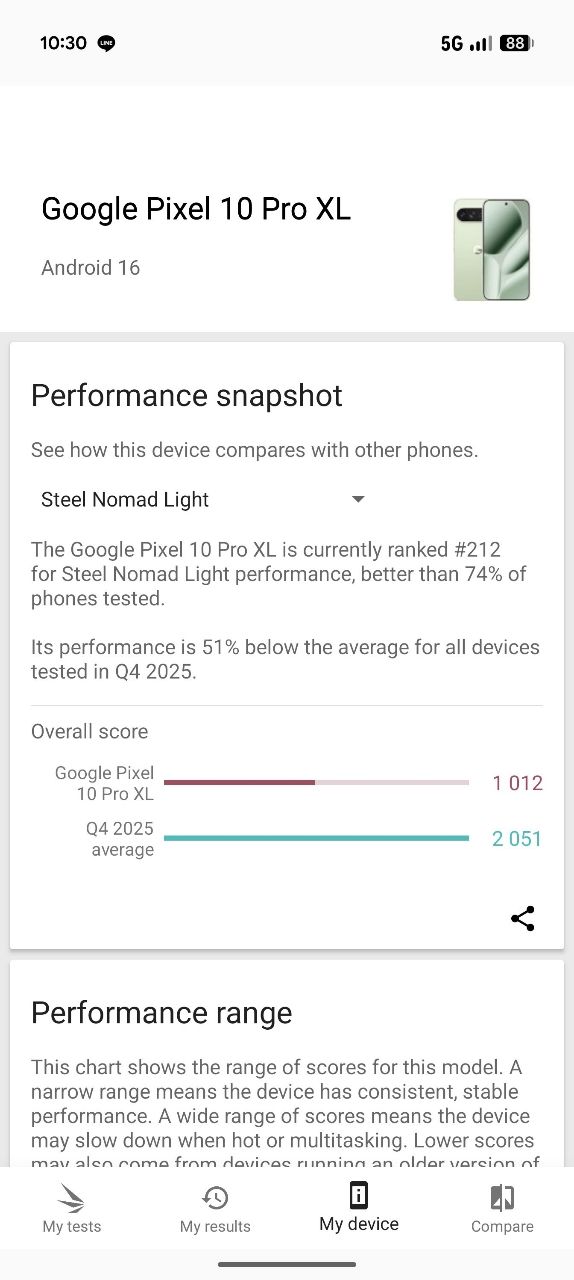 原先Pixel10 pro XL平均分數是1012