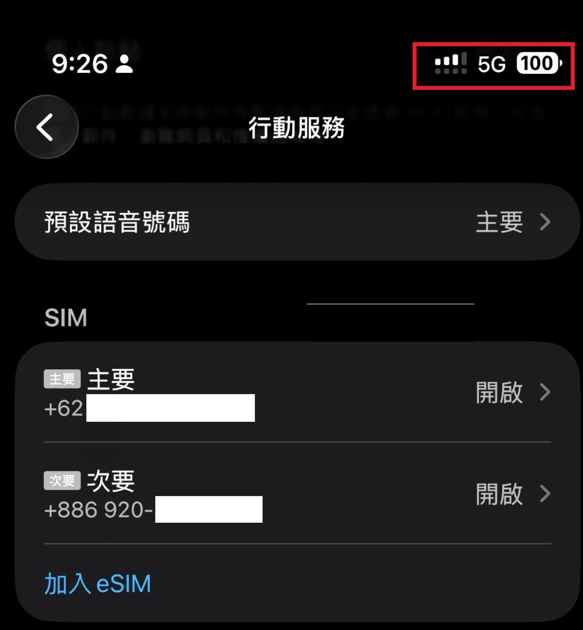 但今年1月1日後開始變得奇怪,次要號碼的訊號幾乎沒有,也收不到簡訊(畫面大概如下