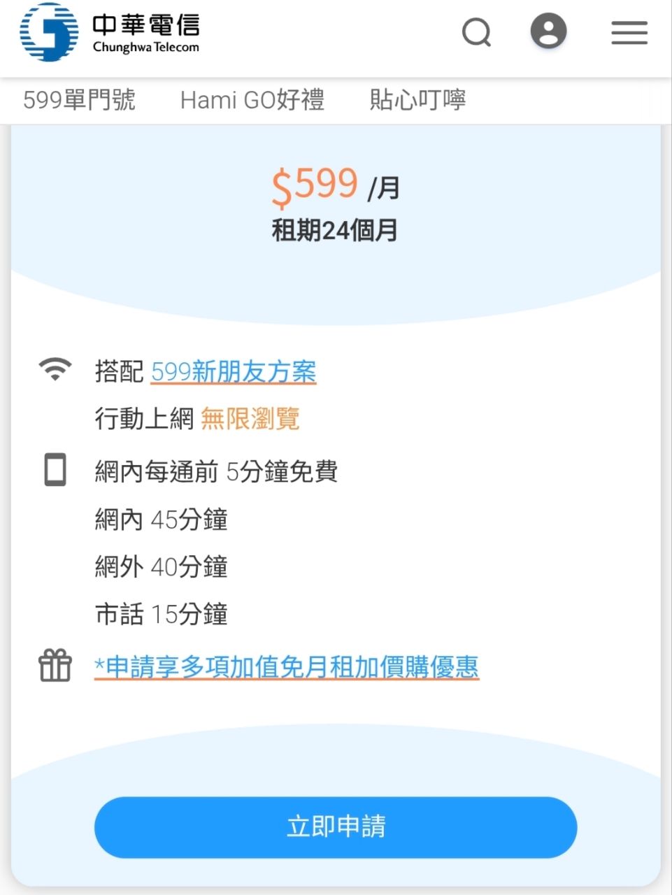[心得] 中華電信 新朋友限定599吃到飽不降速