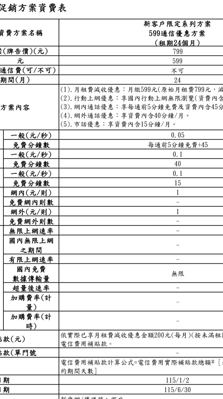 我有跟線上客服確認,這是不限速不限流量的方案(799打折599)