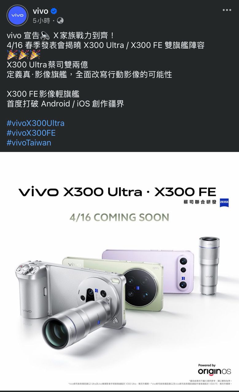[新聞] vivo X300 Ultra/FE 台灣4/16發表