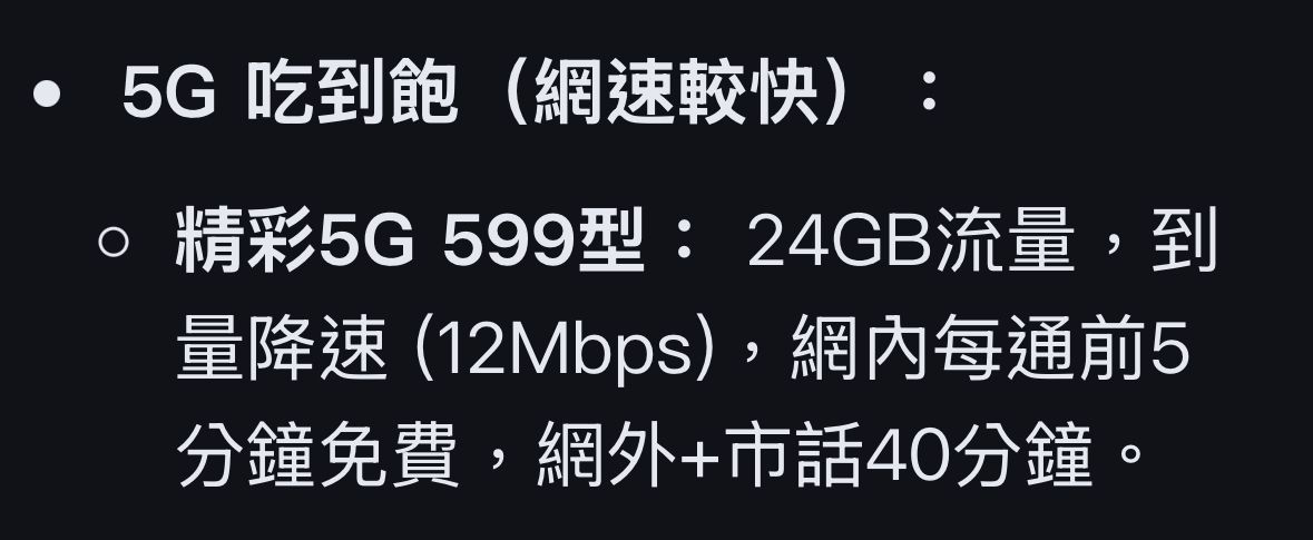 [方案] 中華電信網路吃到飽方案 5G 599