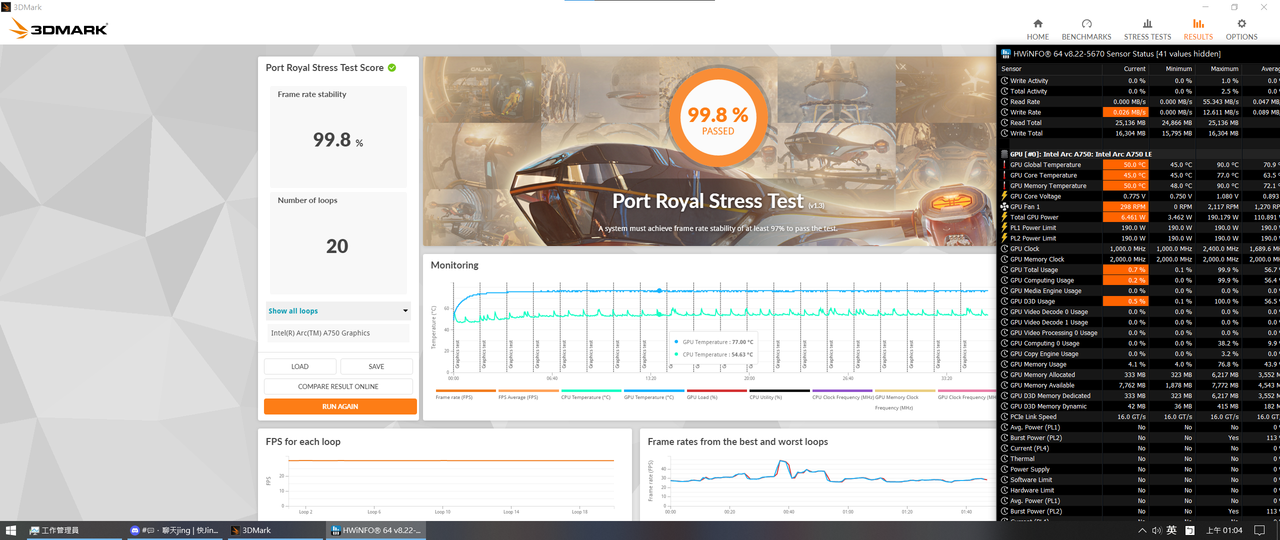 忘記看HWinfo的數據,依3DMark內建偵測GPU最高77度C