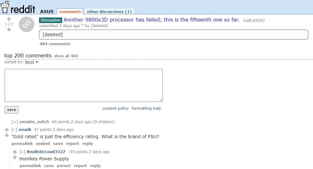 該經營者表示,故障發生的頻率約為每一到兩週損壞一顆,這種「隨機死亡」的現象令其損失慘重。Ryzen 9800X3D 的故障回報此前多集中在華擎(ASRock)主機板上,而此次事件顯示,華碩(ASUS)主機板可能也無法倖免,顯示該問題可能並非特定主機板品牌的個案。