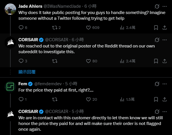 我們已直接與該名客戶聯繫,告知仍會以原優惠價格履行訂單,並確保該筆訂單不會再次