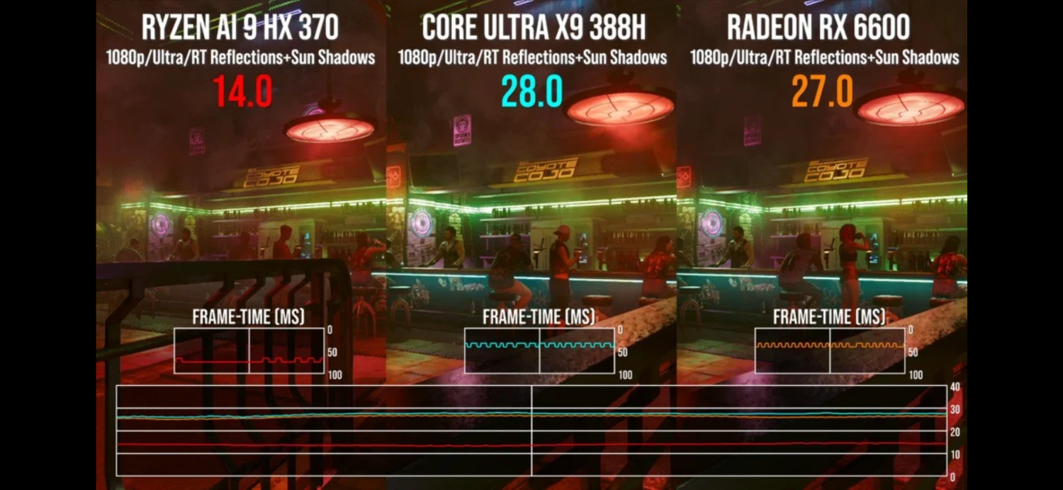 Strix Point 被遠遠甩開,而我們的表現已經能碰到 AMD 入門桌機顯卡 RX 6600 的等級。