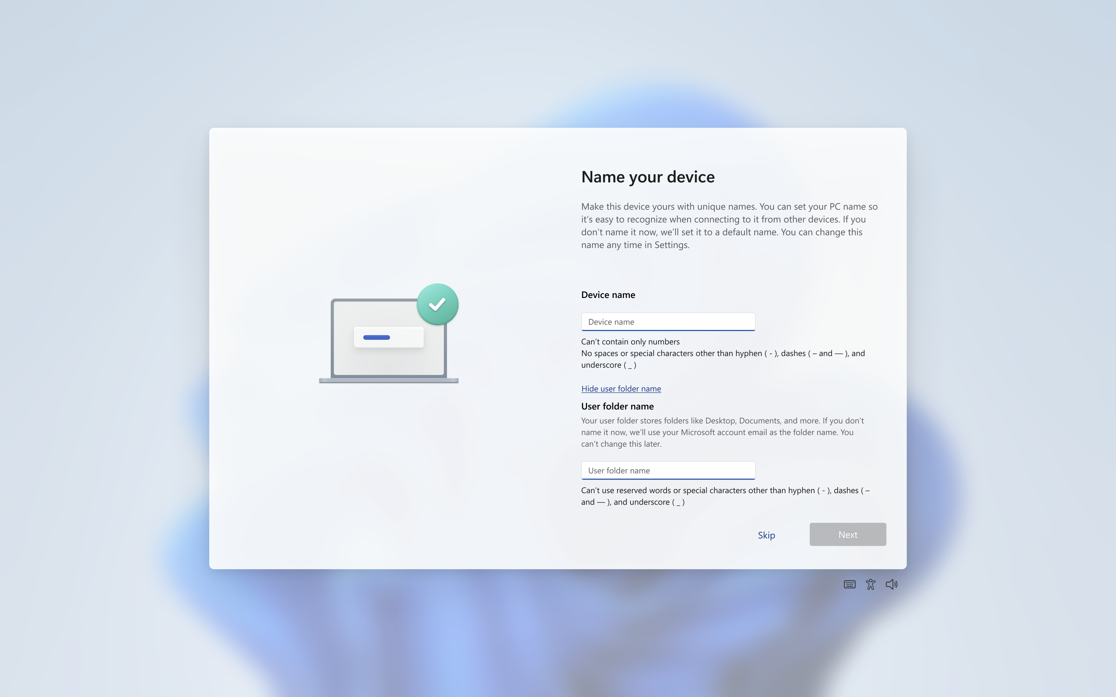 同時在Dev通道的26300.8068開始,OOBE階段在設定裝置名稱時可同時設定帳戶資料夾