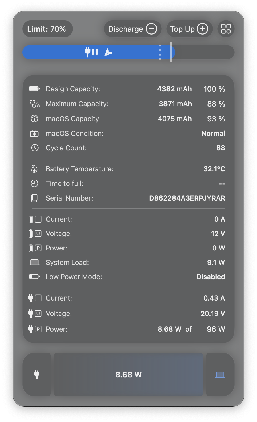 電源部分透過第三方APP也能得知最高輸入可達96W