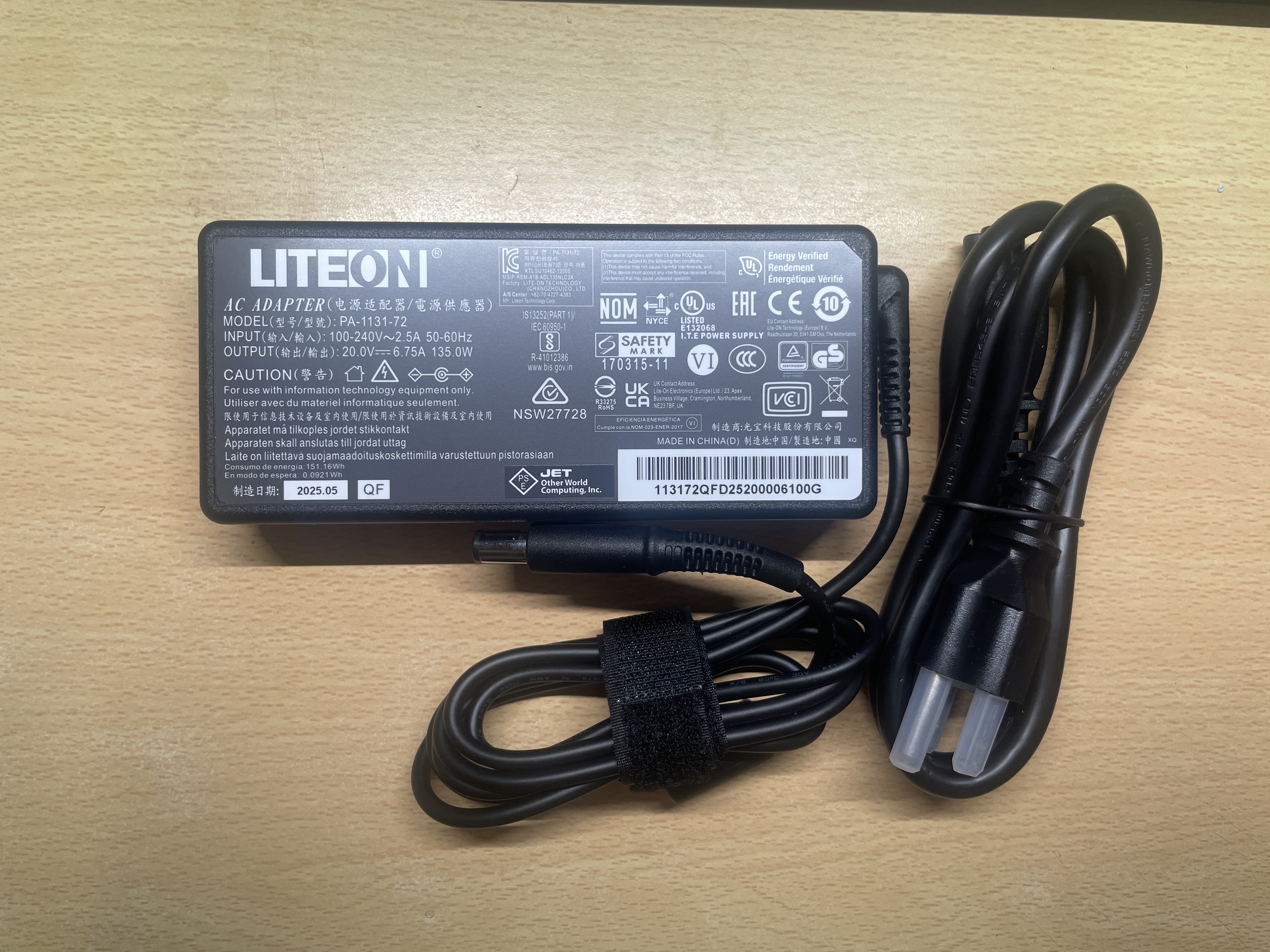 變壓器的是使用點燈的PA-1131-72,可輸出20V/6.75A/135W。因為是使用公版的所以就算