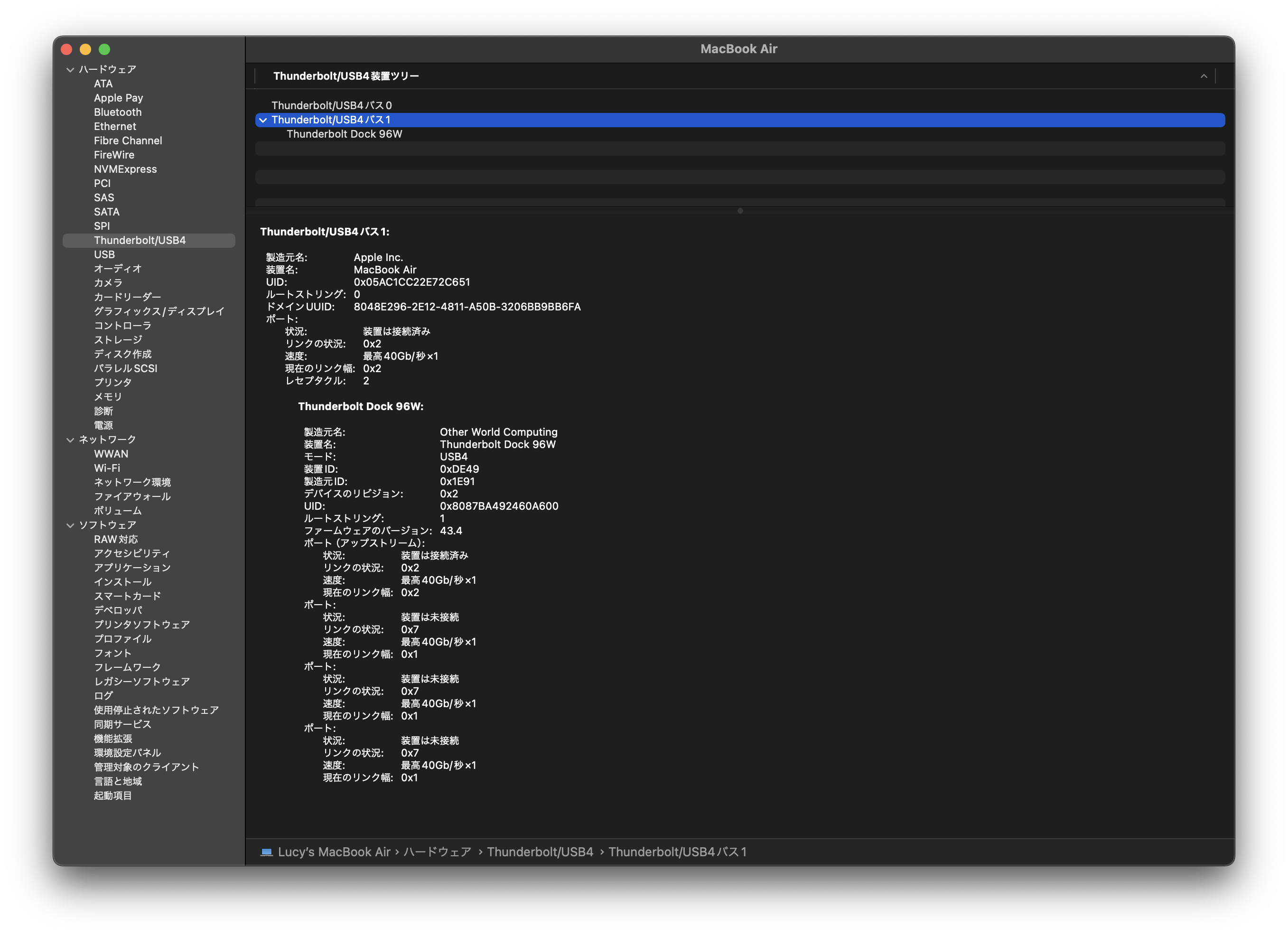 Mac的系統資訊也能正常抓到Dock資訊