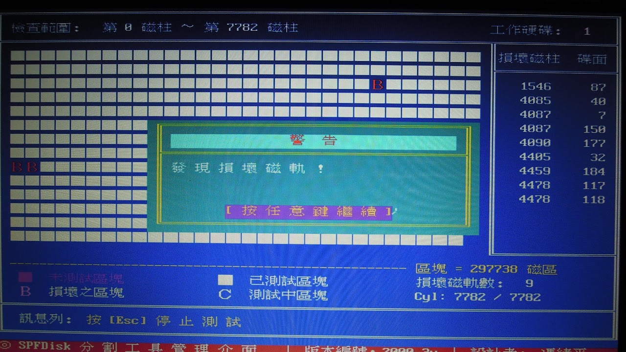 壞軌是陸續出現的, 一開始是某個檔案讀取錯誤, 後來檢測才知道是壞軌,