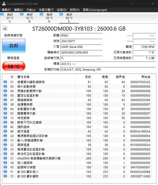 軟體顯示型號ST26000DM000-3Y8103。