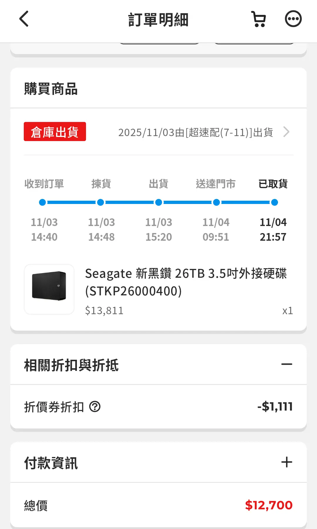 隨便分享,PC家購買,折抵後價格12700約488 NTD/1T。