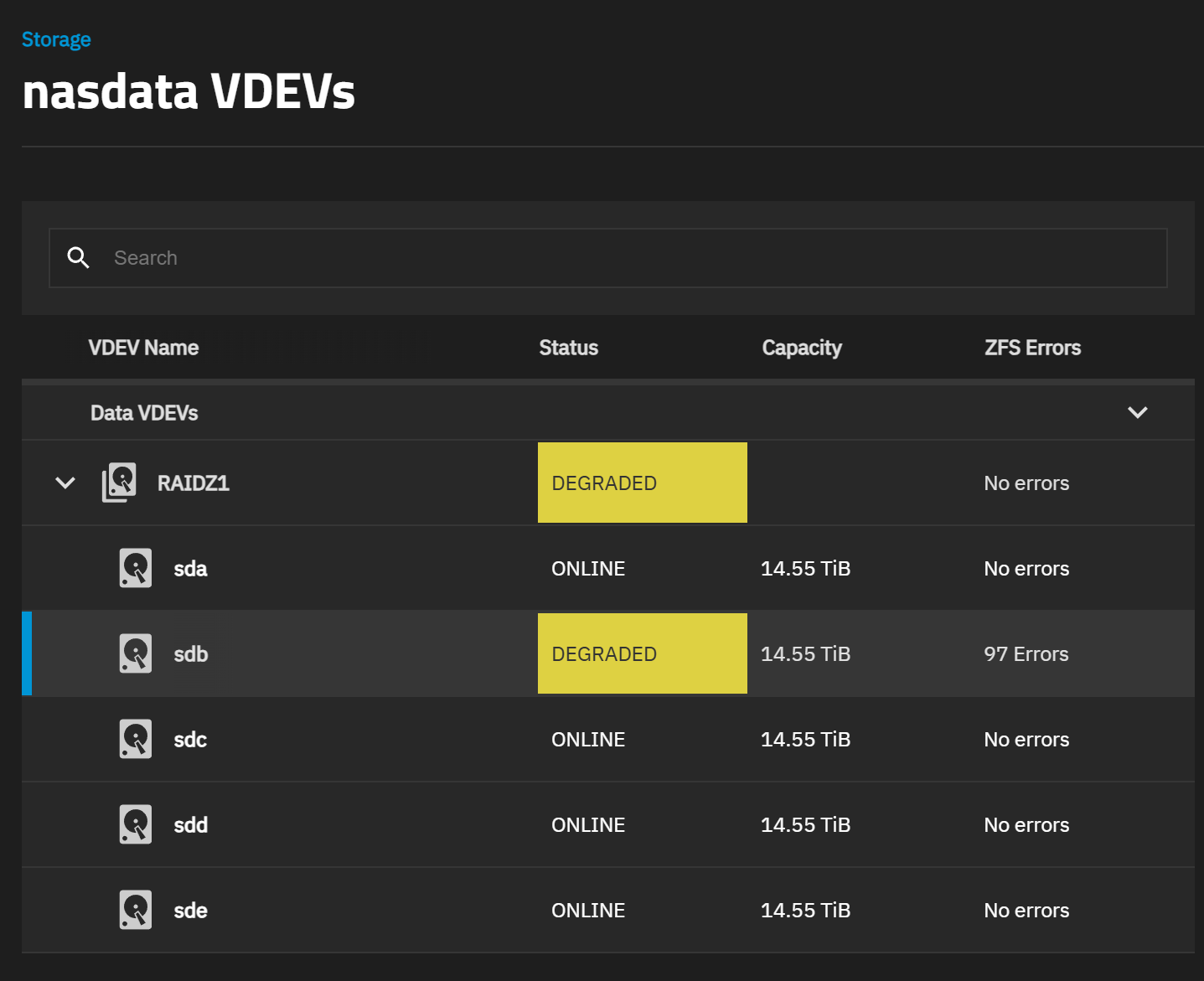 ZFS 有出現 degrade,但之前 ssd 也有出現過,懷疑是 sata 線壞掉