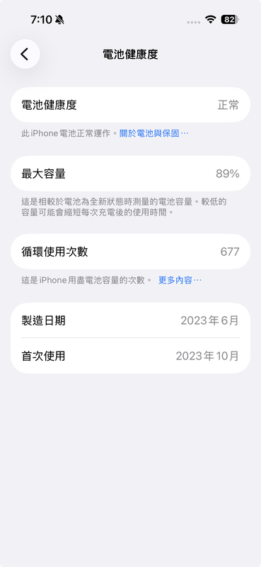 物品狀況:電池健康度 89%