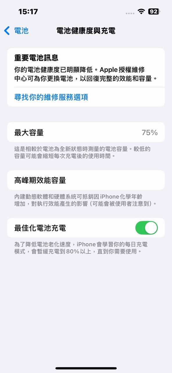 使用時有殼+膜,外觀良好;電池健康度75%;