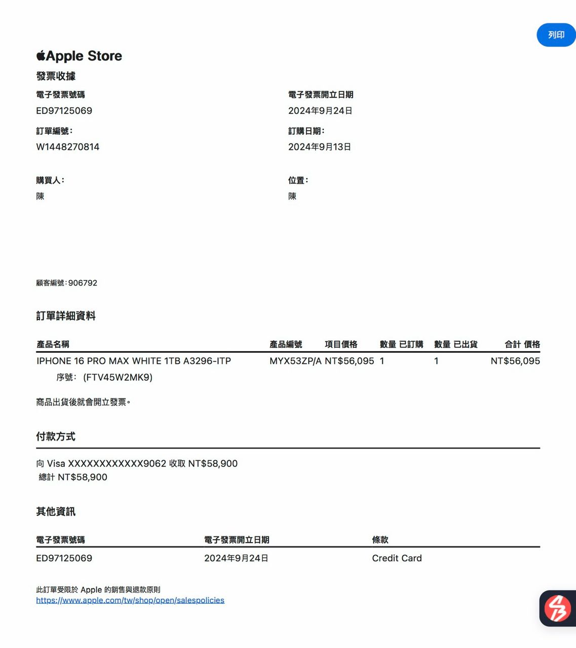 購買日期:2024年9月24日