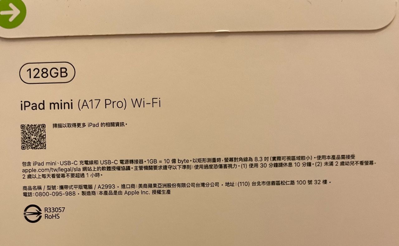 盒裝內含:iPad mini 7 紫色