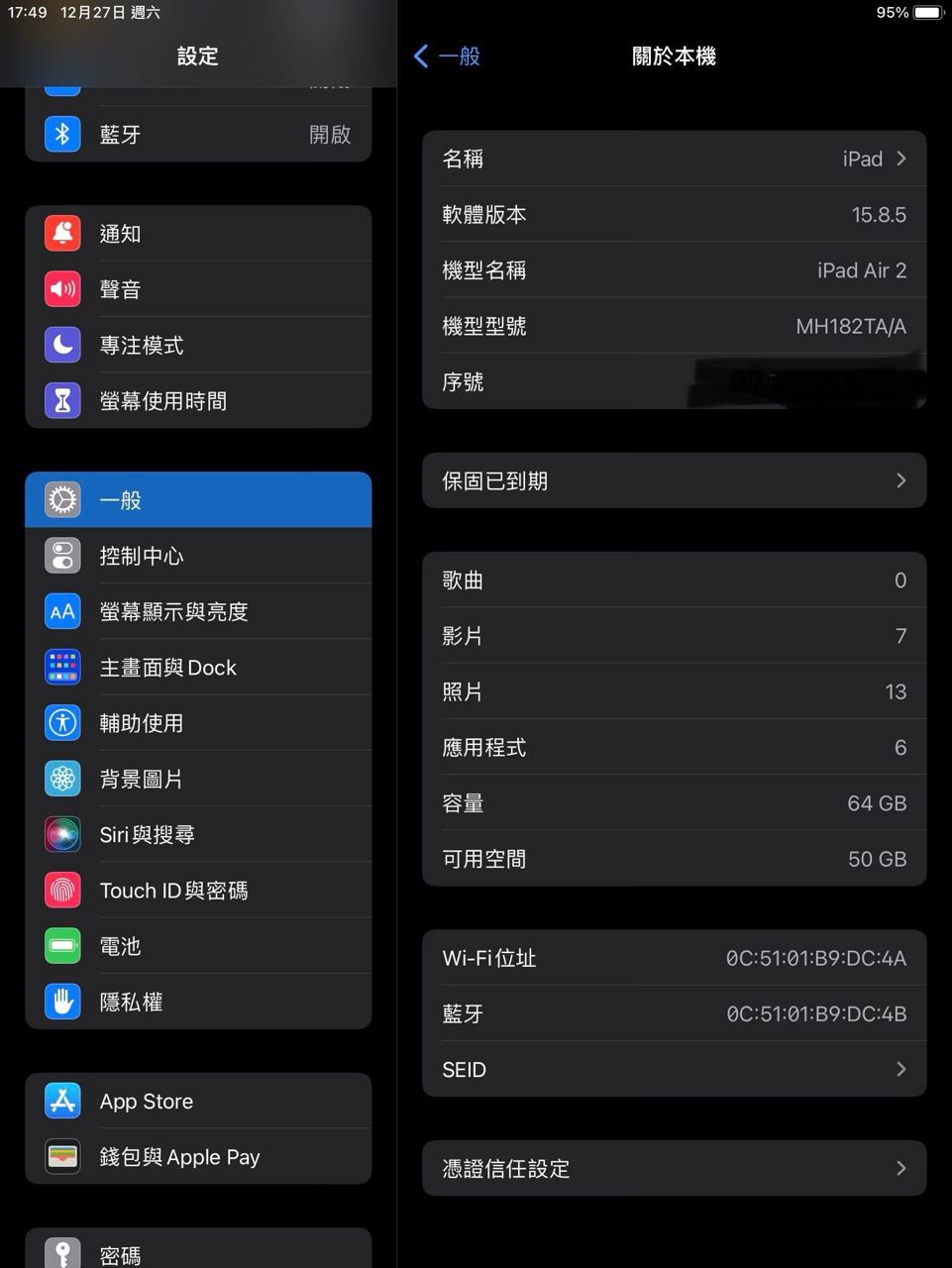 產品型號:iPad Air 2 64g 金
