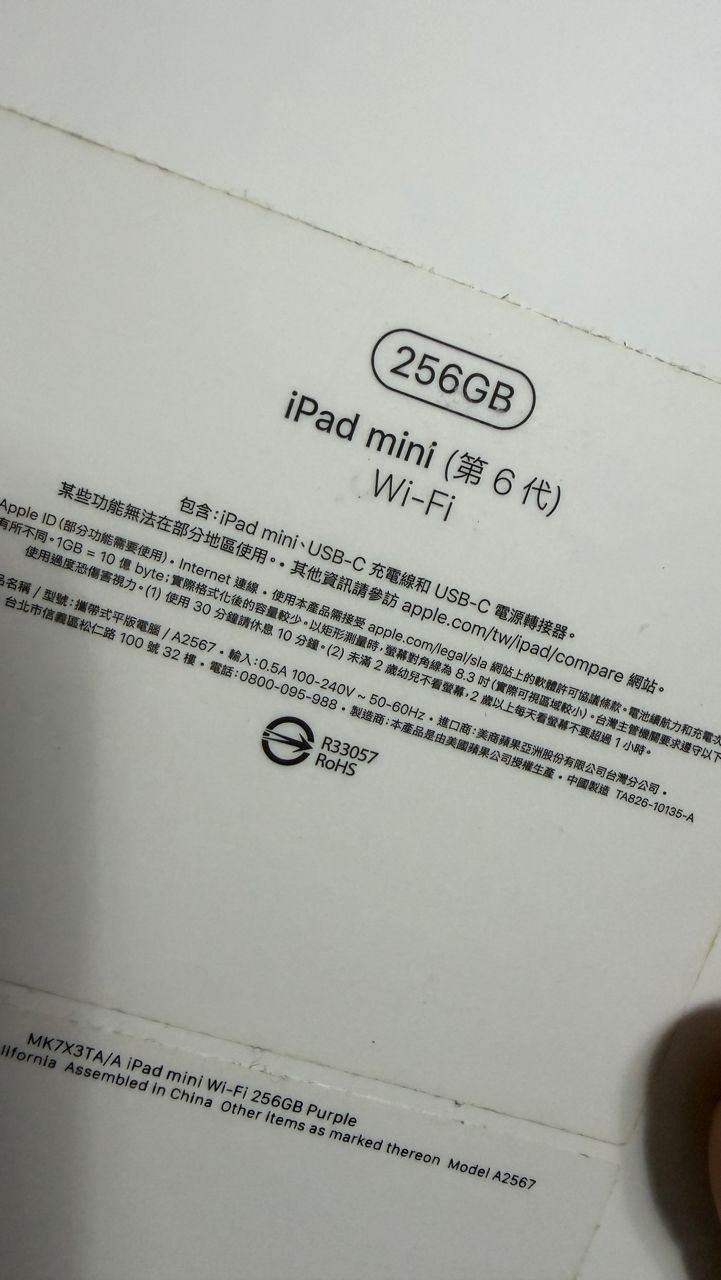 欲售物品:iPad mini 6 wifi 256GB紫色+ Apple Pencil第二代 不拆賣 含配件 近全新