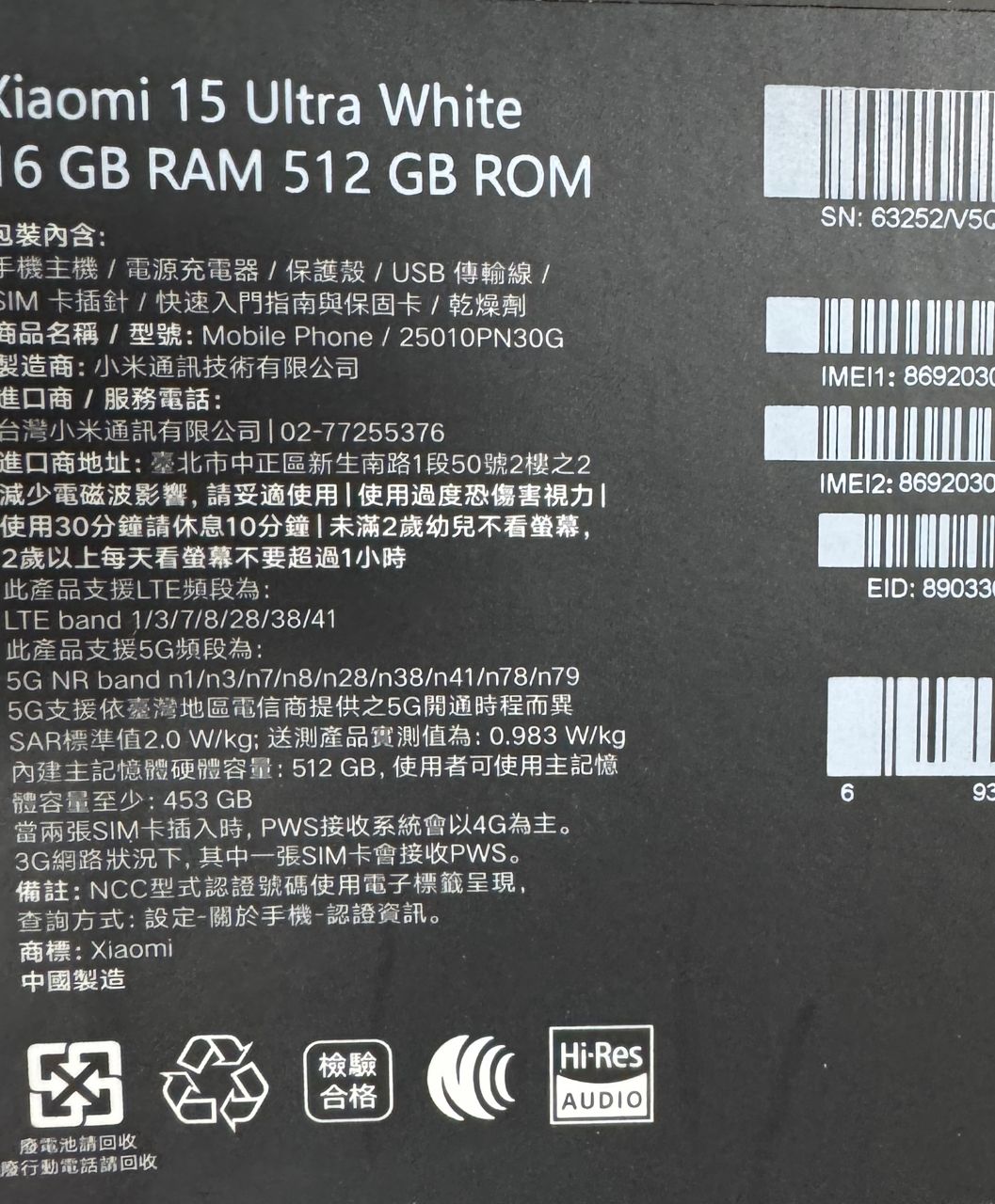 [賣/台北/面交] 小米 15 Ultra 512G 白