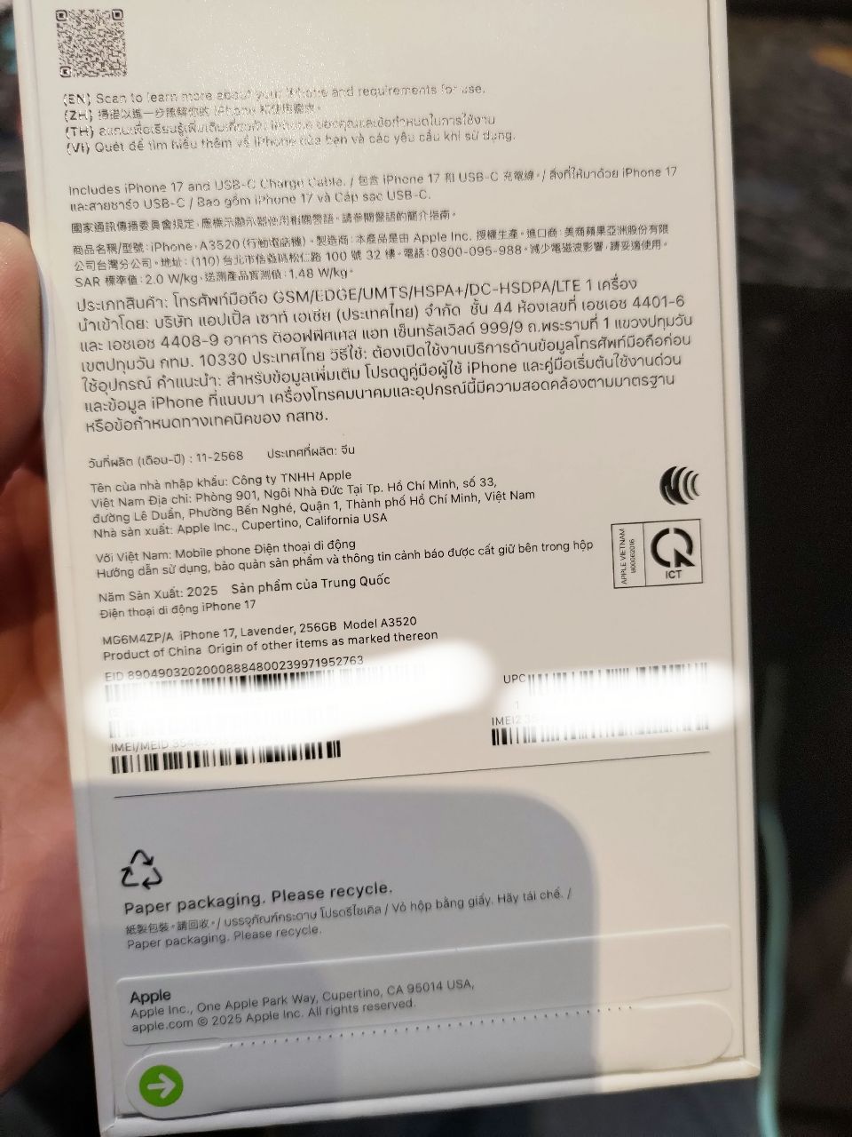 欲售物品:iphone 17 256g 紫色