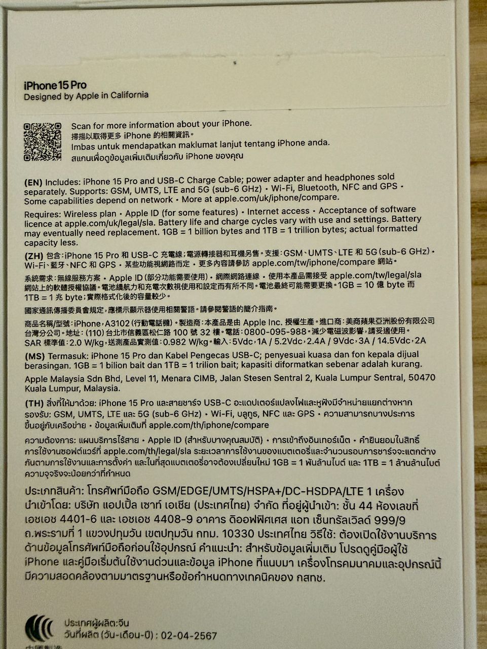 產品型號:iPhone 15 pro 256g