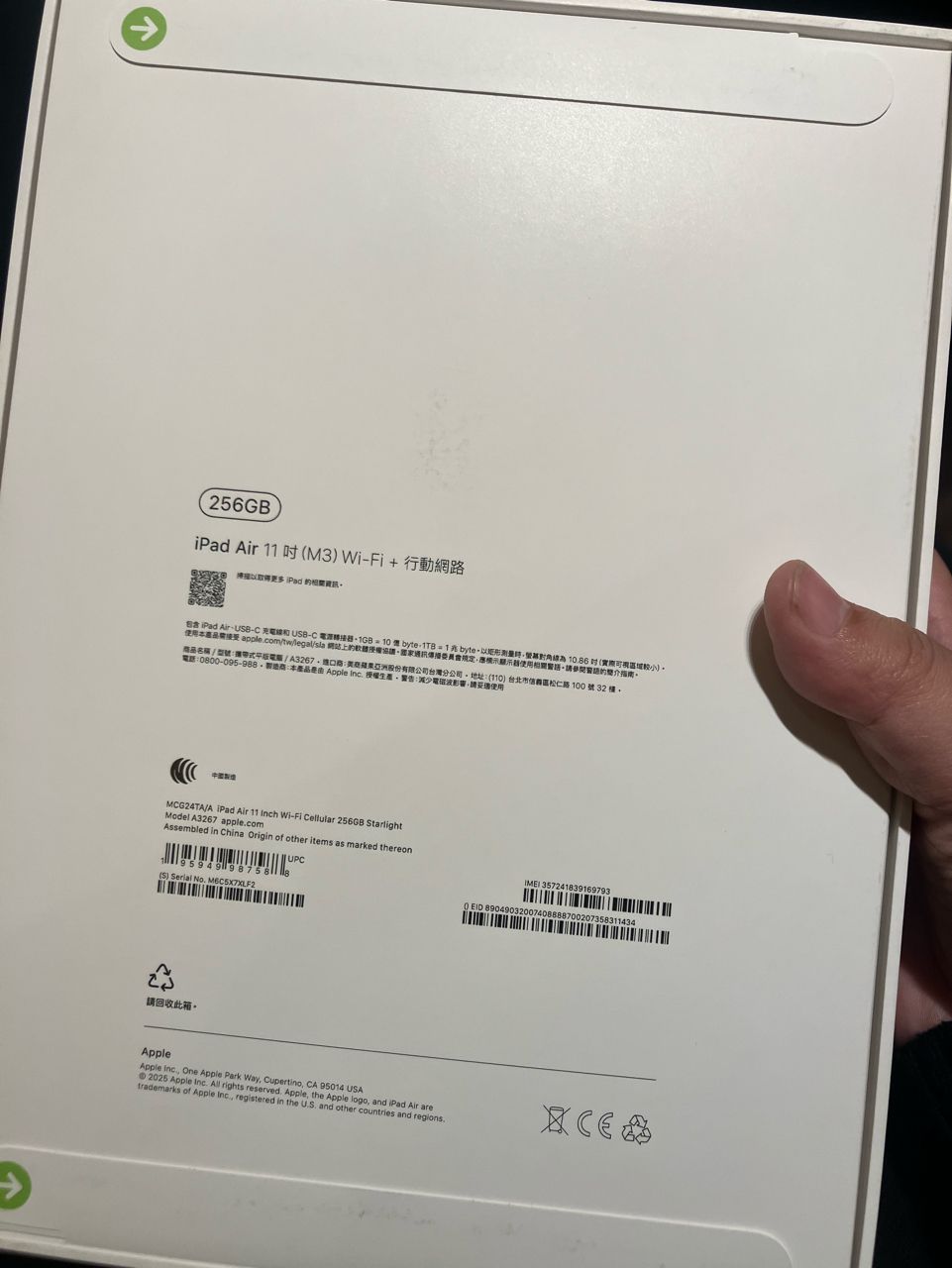 欲售物品:iPad Air M3 Wi-Fi+行動網路 11” 256GB 星光色