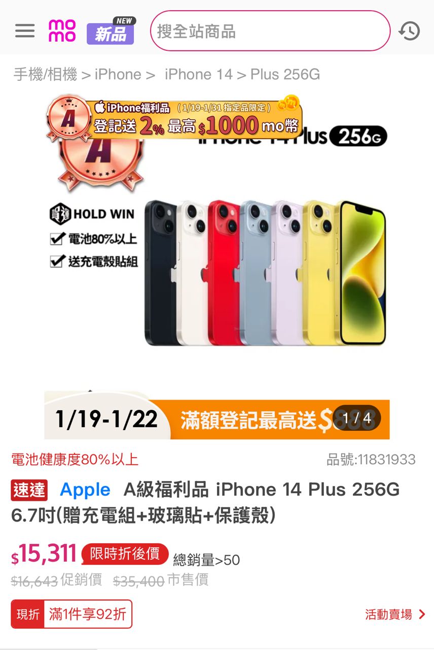 購買來源:momo, 2024年4月購入二手機