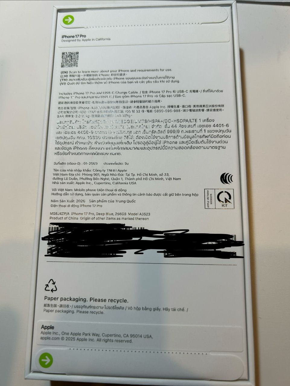 產品型號:iPhone 17 Pro 256/ A3523