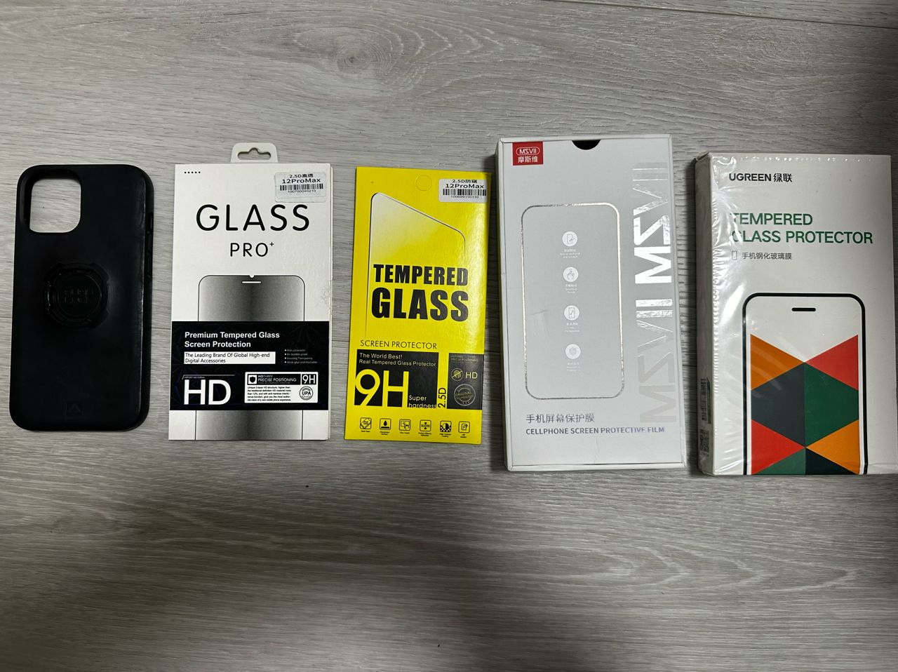 ,附黑色QUAD LOCK的手機殼(使用過)、一般透明手機殼(使用過)