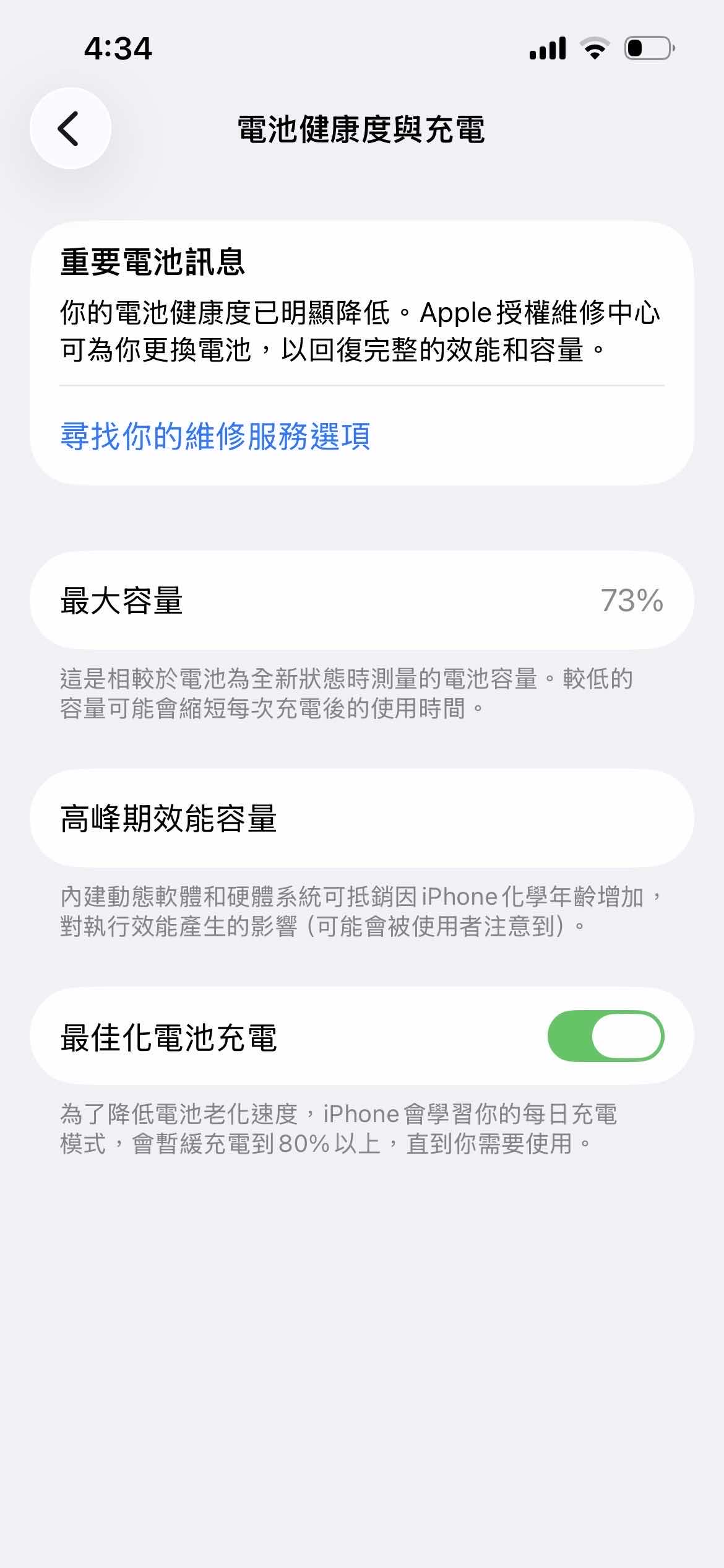 電池健康度:73%