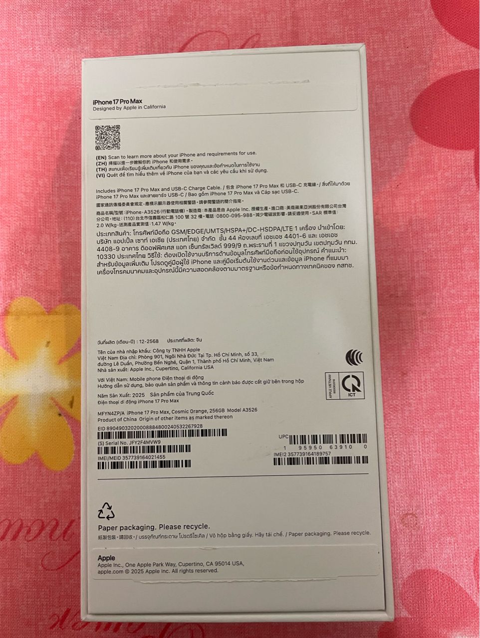 欲售物品:IPhone 17 Pro Max 256G 橘色