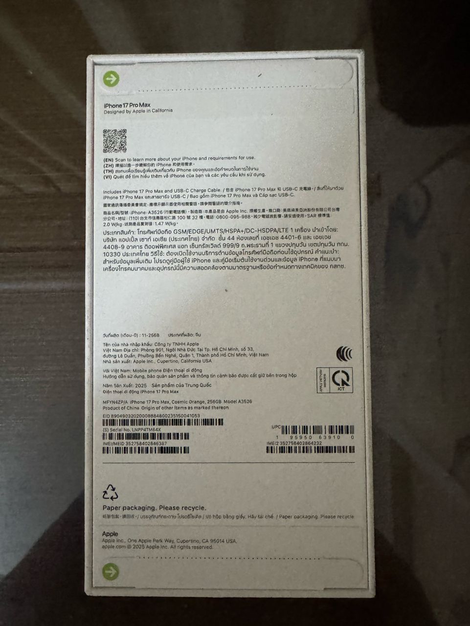 欲售物品:IPhone 17 Pro Max 256GB 宇宙橙