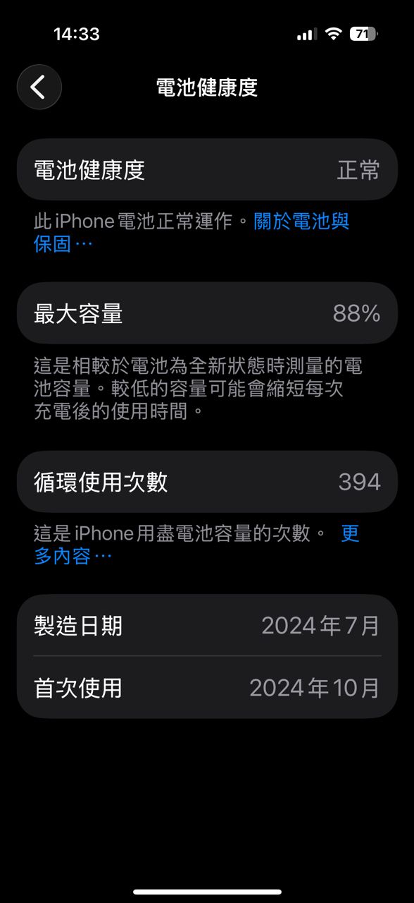 物品狀況:過保,電池健康度88%