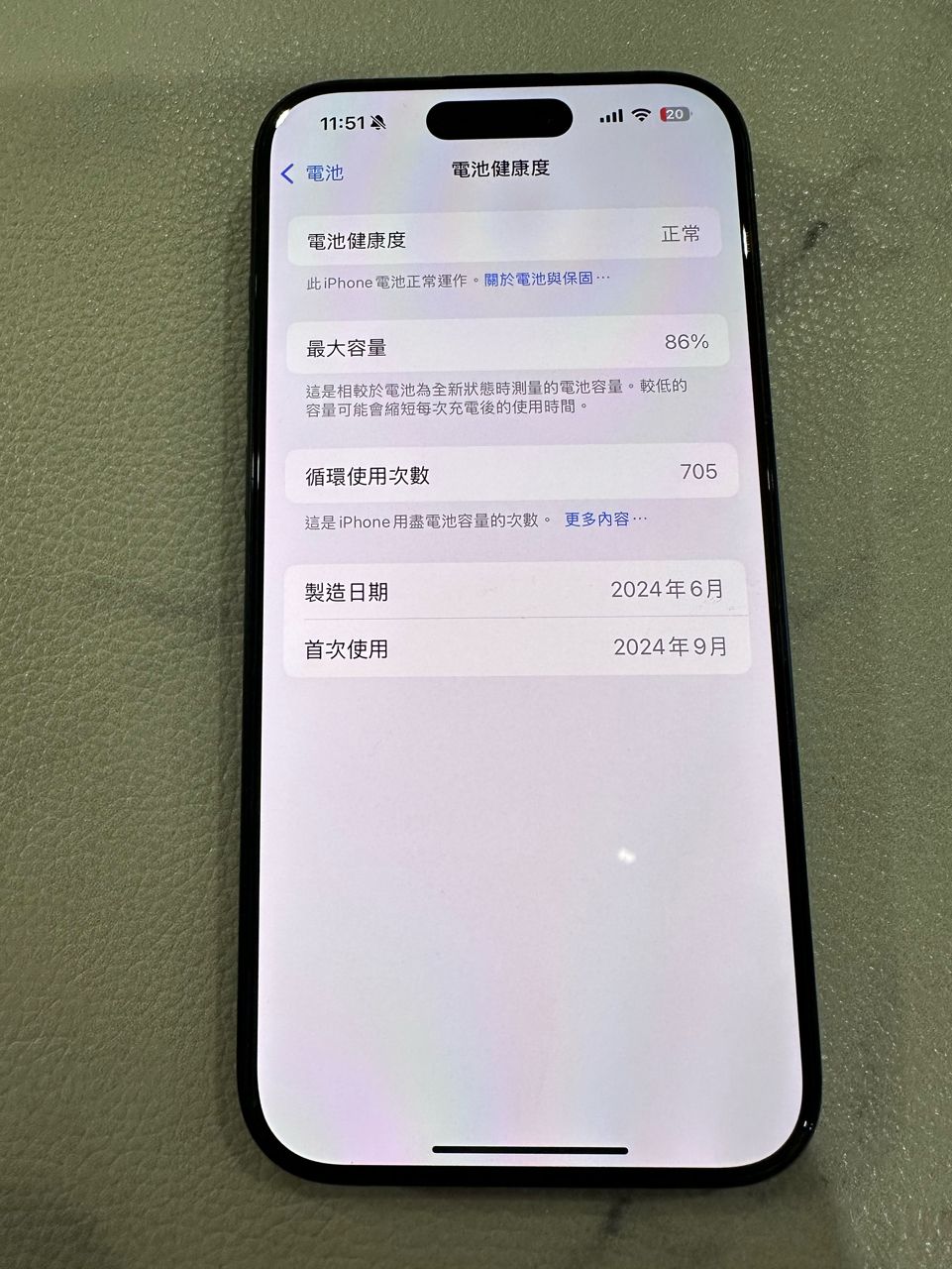 物品狀況:面板有小傷痕,不太明顯不影響使用,電池健康度86%