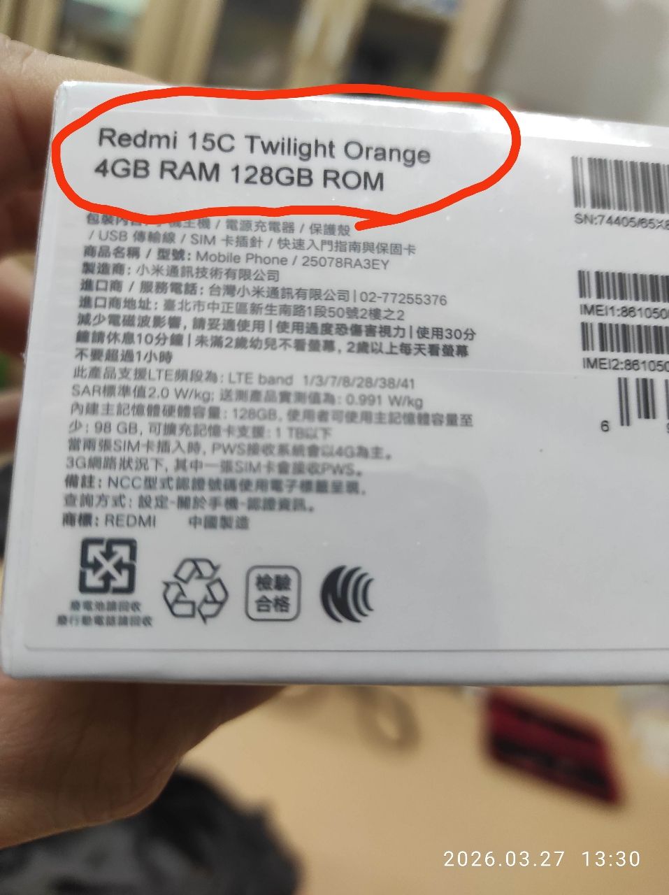 1.欲售物品:紅米15C手機