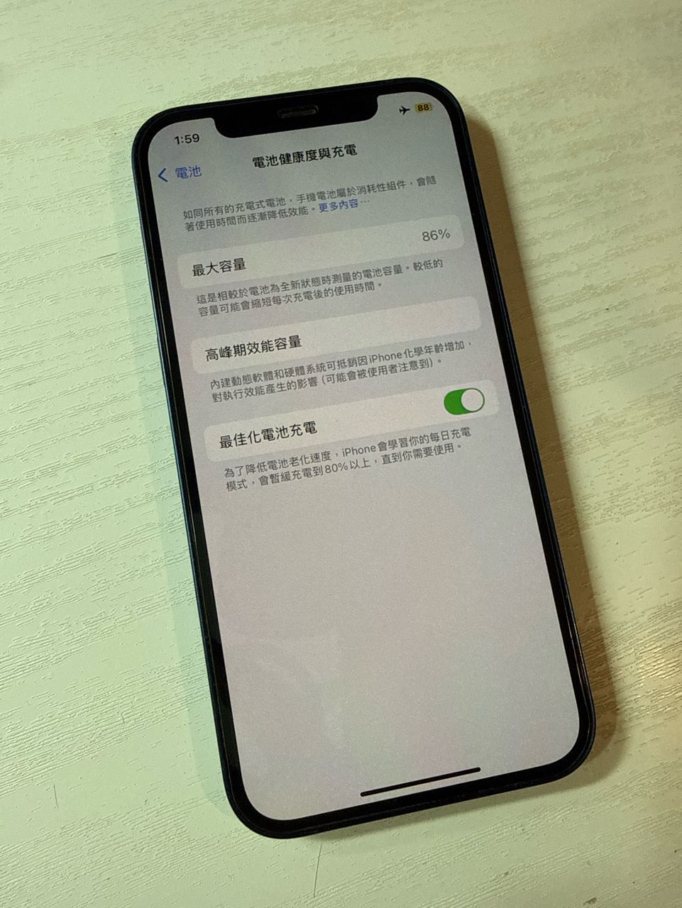電池健康度86%,2023年9月換過原廠電池,在Studio A換的,可以給你看發票以示證明。