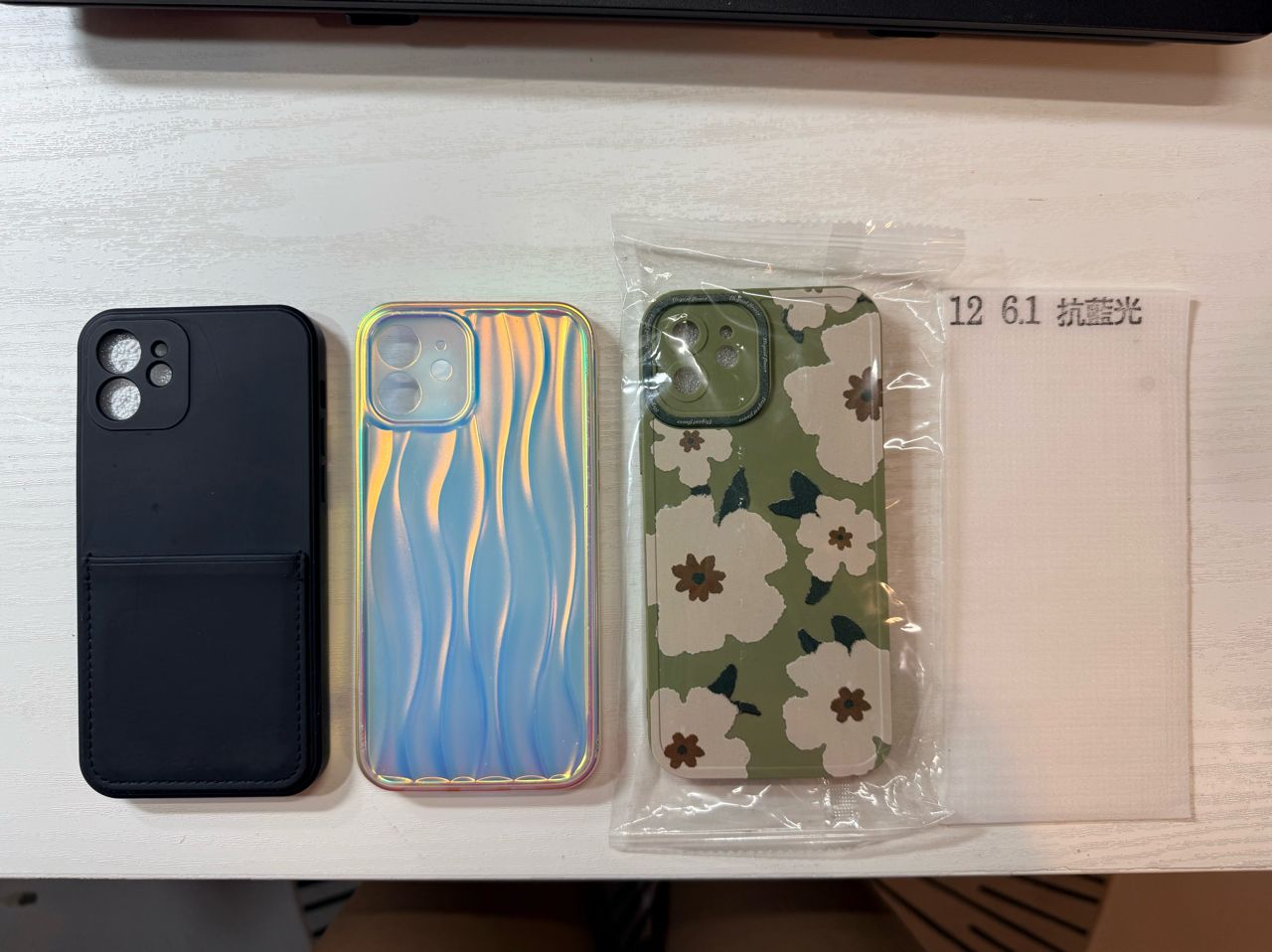 最後一張是贈品,有3個二手手機殼與一個全新未開封的,以及一片全新半滿版藍光螢幕