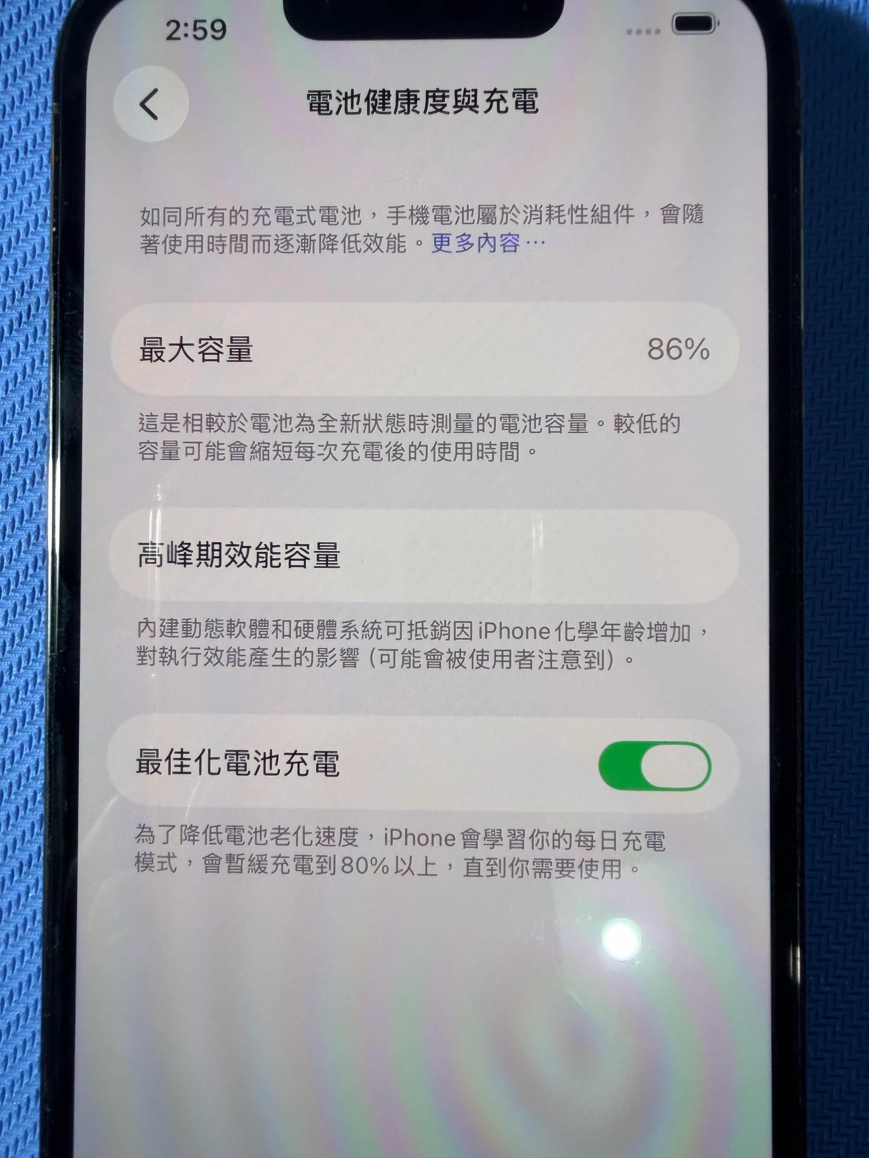 電池健康度86%