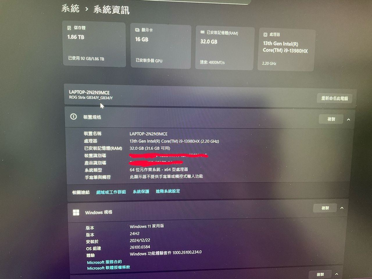 ◎筆電型號:Asus ROG G834JY 18吋